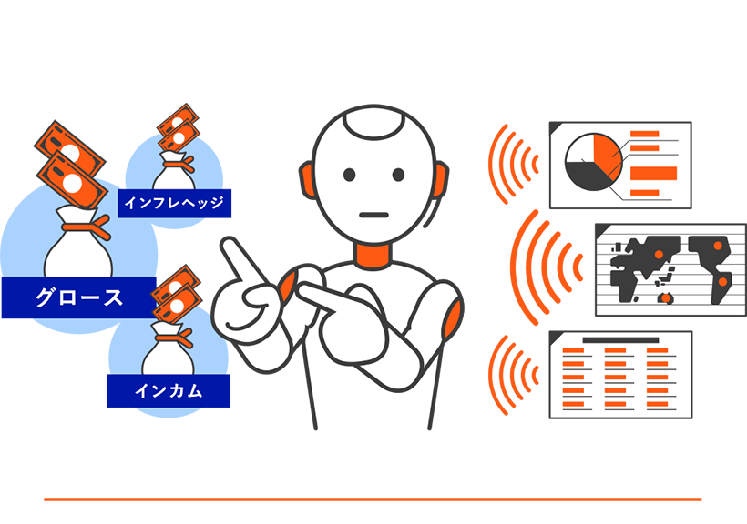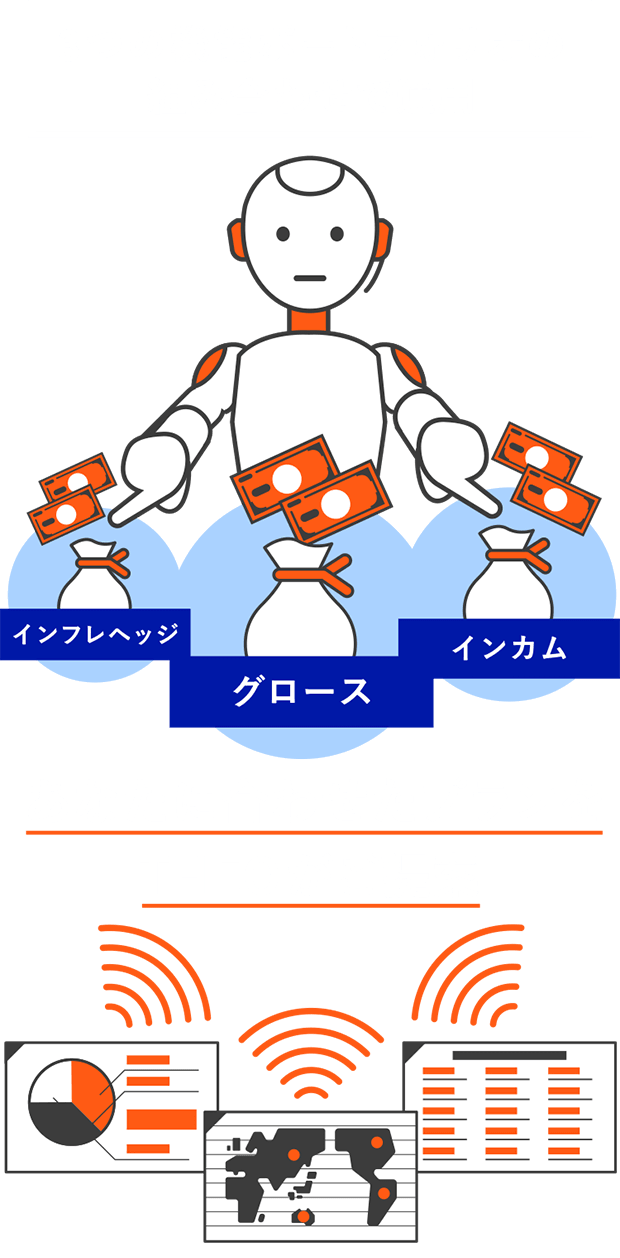 THEOでは、お客様の目的に合わせた資産運用を行うため、性質の異なる3つの機能ポートフォリオを組み合わせてポートフォリオを構築しています。